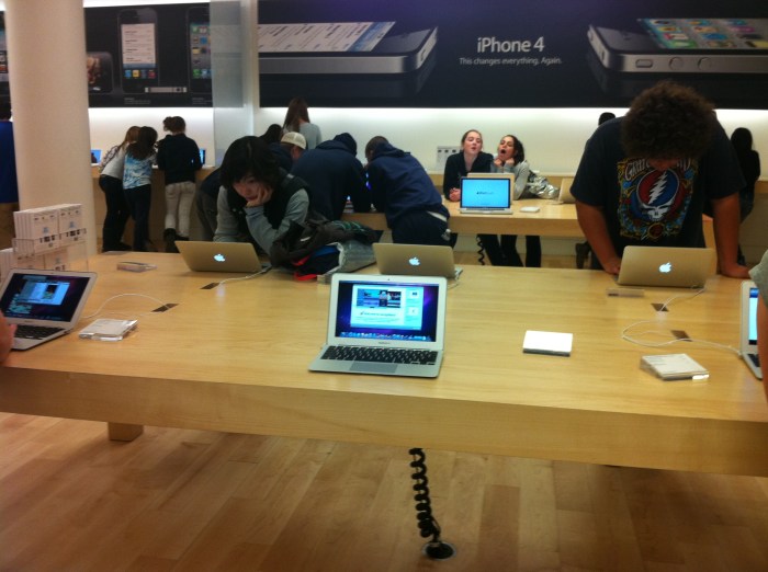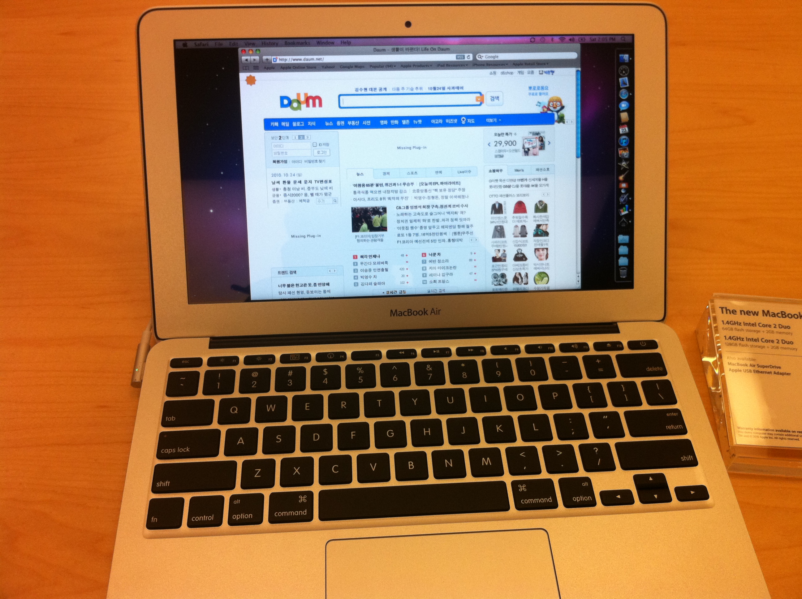 매장입구에 맥북에어 11.6인치형을 6대정도 전시해놓았는데 의외로 사람이 많지 않았다. 그래서 충분히 20여분가량 이것저것 테스트해볼 수가 있었다.