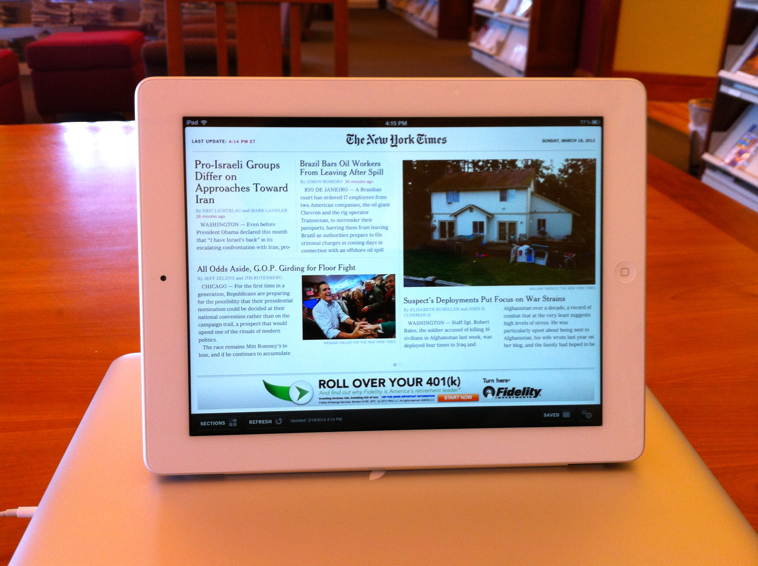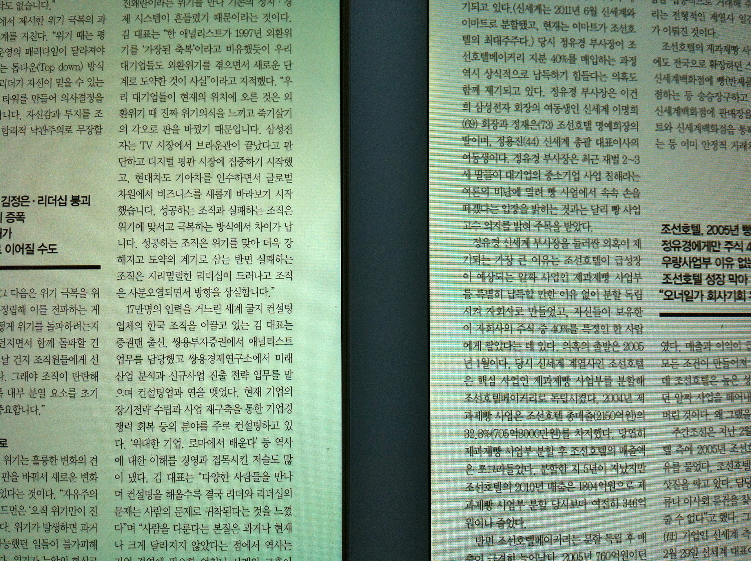 무엇보다도 감탄한 것은 해상도가 높아서 예전에는 확대해야 읽을 수 있었던 PDF신문등을 확대하지 않고도 그대로 읽을 수 있는 것이었다. 돋보기를 써야할 정도로 노안이라면 모르겠지만 웬만한 경우에는 신문 한면을 확대하지 않고도 기사본문을 읽을 수 있다. 아이패드2에서는 불가능했던 일이다.