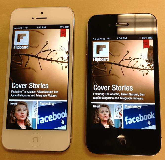 그래도 플립보드 등 생각보다 많은 앱들이 벌써 아이폰5에 최적화되어 있다. 뭐 그리 어려운 작업이 아닐테니 다음주말 정도면 대부분의 주요앱들은 아이폰5에 대응되지 않을까 싶다.