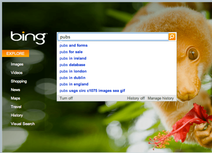 역시 지역에 특화된 결과를 보여준다기보다는 일반적인 검색어추천을 하고 있다. Pubs을 영국과 아일랜드에서 특히 많이 검색하는 모양.