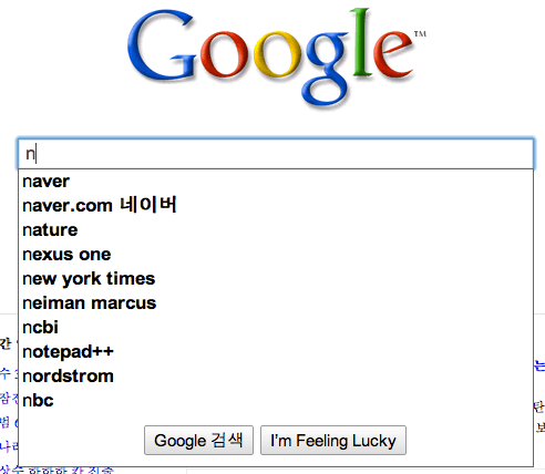 갑자기 호기심이 발동해서 구글코리아에서 n을 입력하면 어떨까 해봤음.