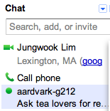 마치 채팅창처럼 나타나는 다이얼패드를 이용해 미국내 친구번호로 전화를 해서 통화했는데 통화품질에 아무 문제가 없었다. 예전에 Google Voice를 가입해 내 고유번호(이 동네의 로컬전화번호)를 미리 받아둔 일이 있었는데 상대방에게는 자동으로 그 번호가 내 발신자번호로 나타났다. 그 친구가 표시된 발신번호로 콜백을 하면 내 지메일 채팅창이 전화를 받아서 벨소리를 울려준다. 컴퓨터를 켜고 지메일창을 열어둔 경우라면 컴퓨터자체가 자체 전화번호를 가진 전화단말기 역할을 하는 것이다.