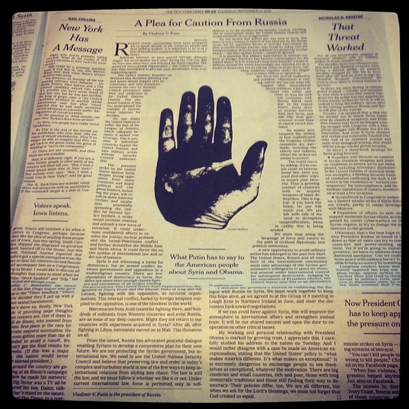우리의 경우에 비유하면 한국의 대표 신문이 일본 아베 신조 총리의 한국 비판 글을 받아서 실어주는 것이라고 할 수 있을까. 푸틴이 글에서 주장하는 내용의 정당성은 차치하고라도 나는 이처럼 다양한 인물의 다양한 견해를 과감히 수용해 게재하는 뉴욕타임스의 편집 방침에 다시 한번 감탄했다.