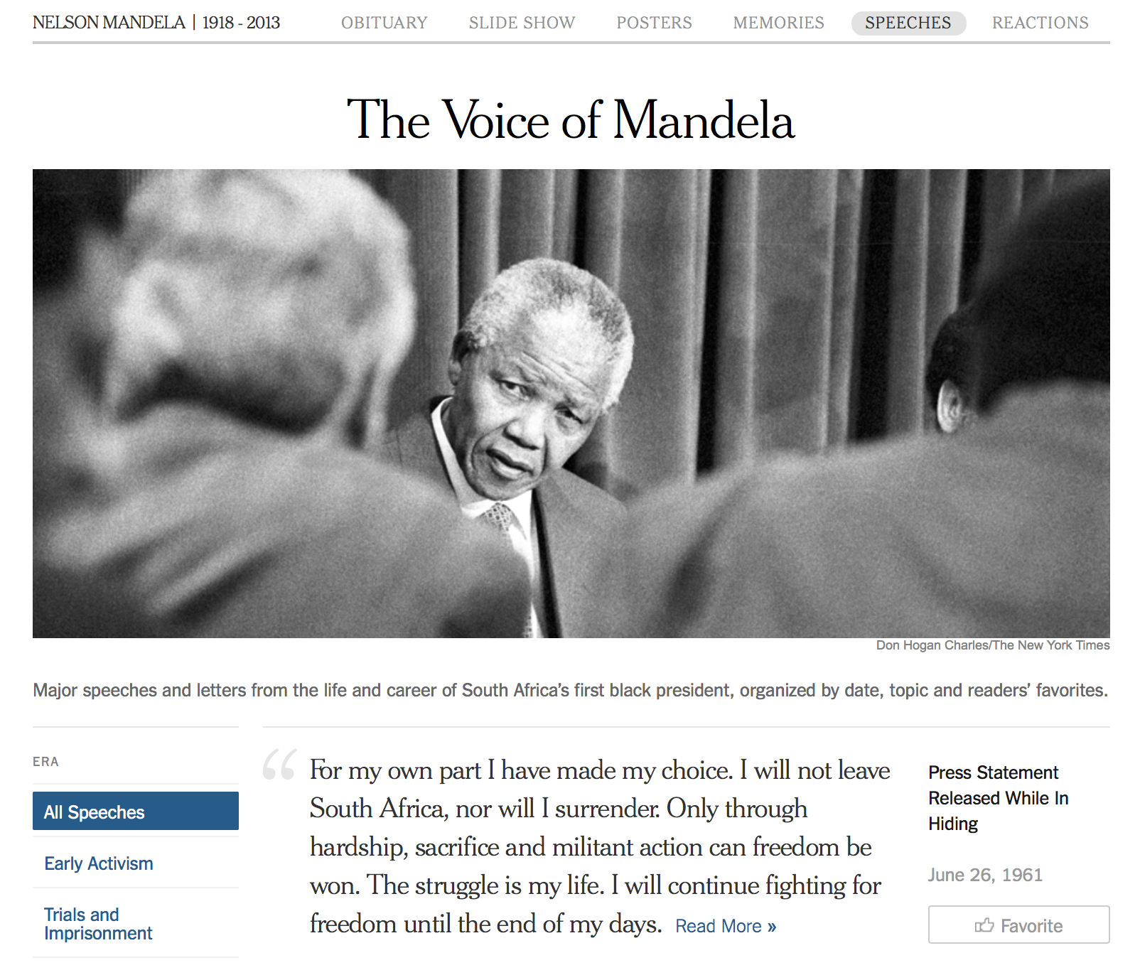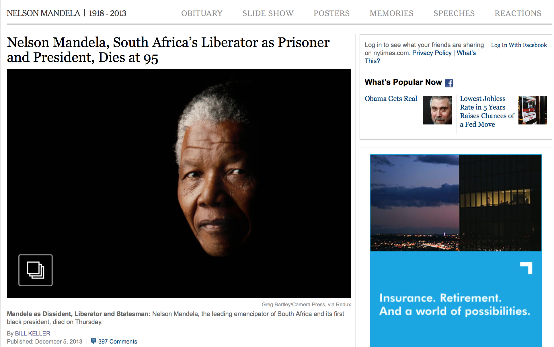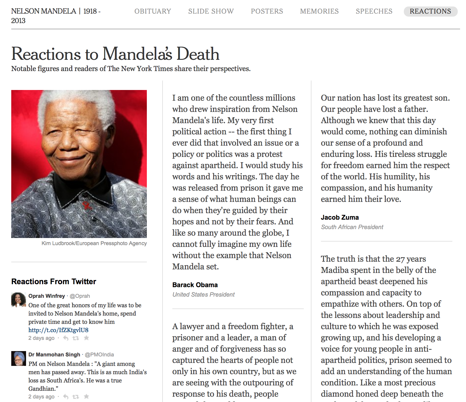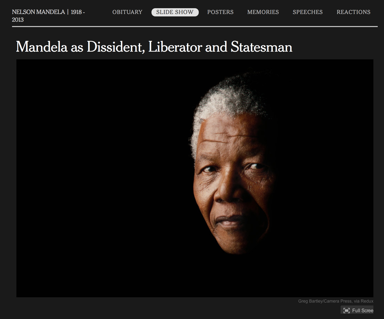 어쨌든 NYT의 만델라 부고 특집은 종이지면보다 온라인에서 더욱 세심하게 준비했다는 생각이 들어서 스크린샷을 공유해본다.